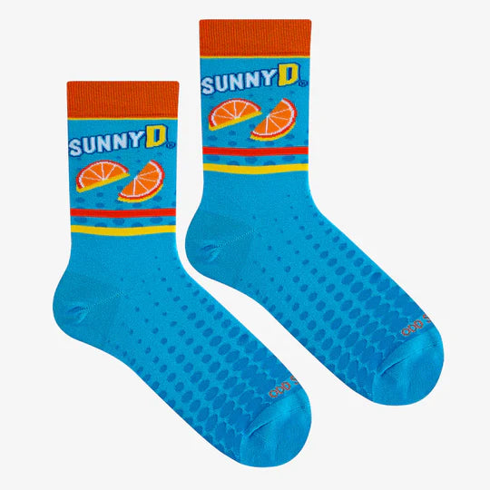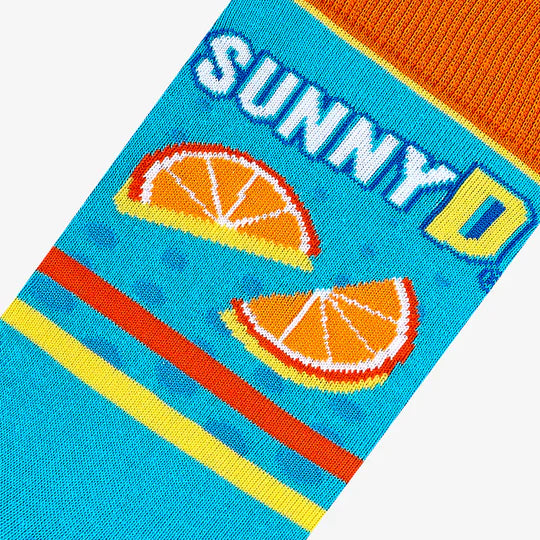 Brighten your sock drawer with Odd Sox Sunny D Slices Crew Socks. These vibrant crew-length socks feature a playful citrus-inspired design that captures the nostalgic appeal of a beloved beverage. Crafted for comfort and durability, they're perfect for adding a pop of personality to your everyday wardrobe. One pair included. Size L.