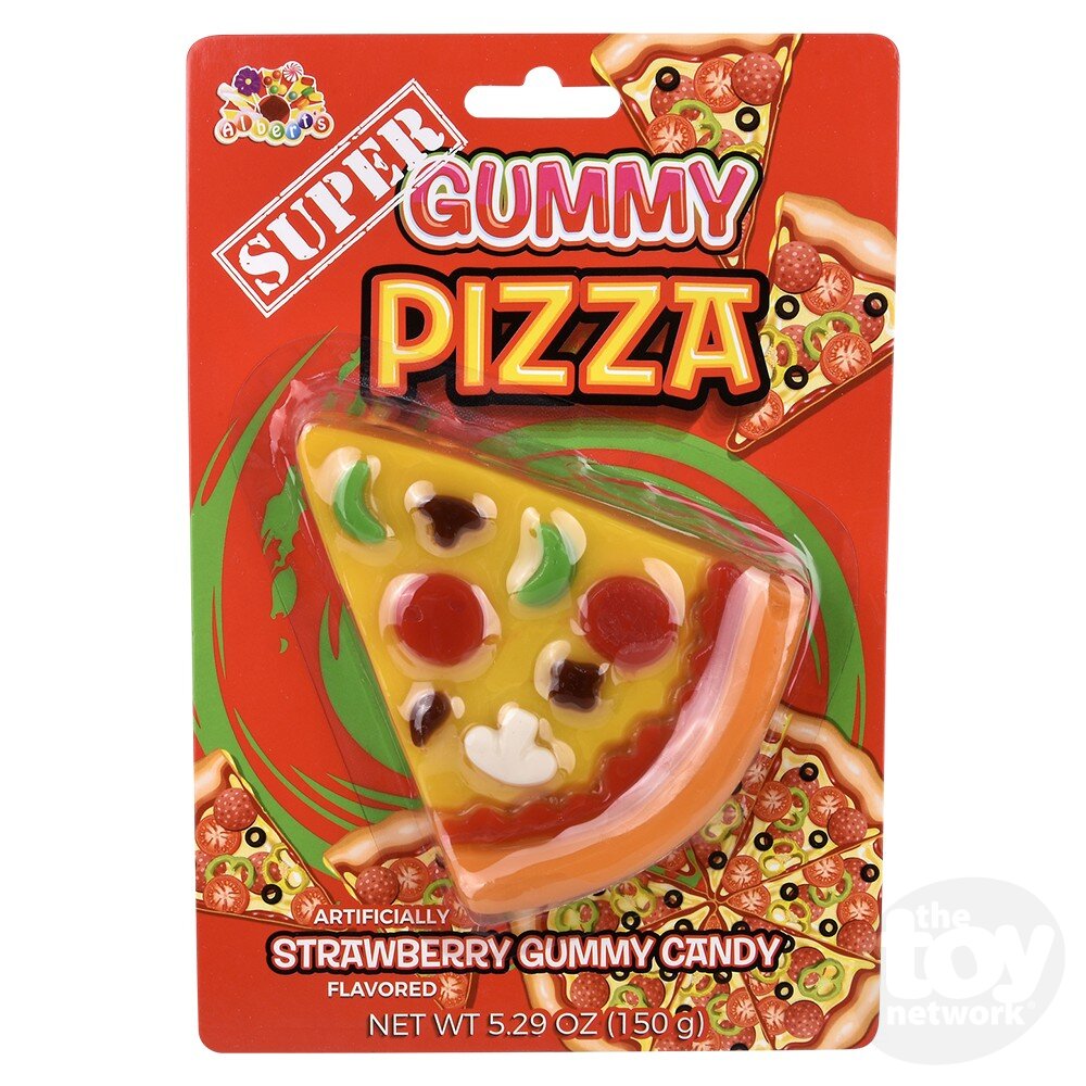 Our Super Gummy Pizza is a large gummy that mimics a real slice of pizza.