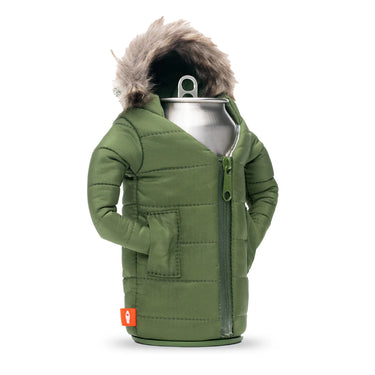 Add some flare to your winter drinkwear wardrobe with a cozy Puffin Parka cooler for your bottles and tall cans. The faux fur-lined hood brings a touch of glamour to a timeless classic. This diva will keep your drink cold and looking fabulous.