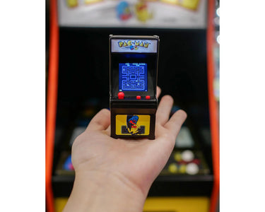 This is the Tiny Arcade Pac-Man Video Game from Super Impulse. Experience the nostalgia of the iconic Pac-Man arcade game in its tiniest form ever. Guide Pac-Man through the maze, avoid the ghosts, and enjoy high-quality retro artwork and audio features in this miniature version. Perfect for fans of retro gaming and collectors alike.