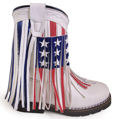 White with Flag Print Fringe Autry Western Boot.