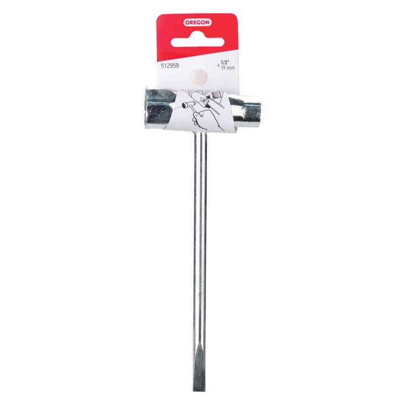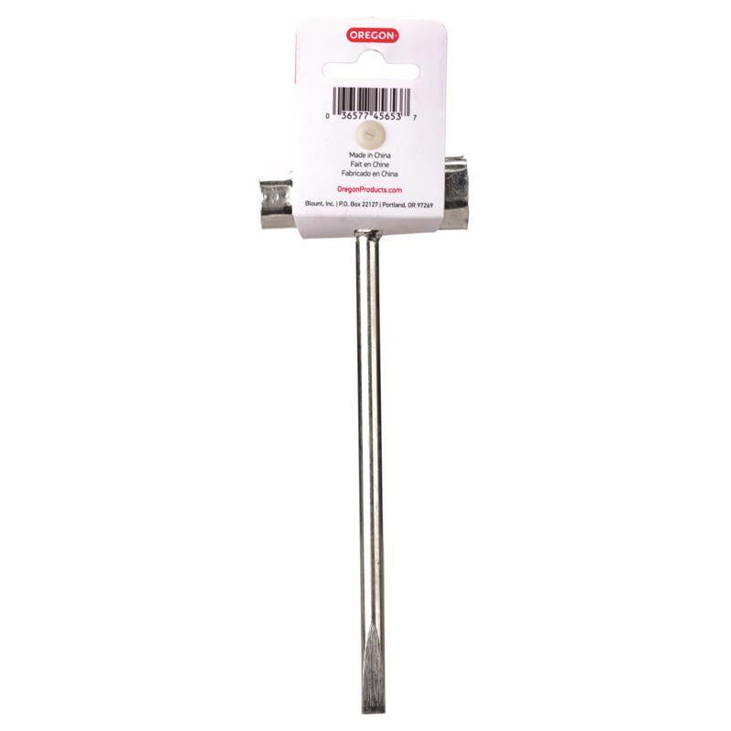 A combination screwdriver and wrench to make chainsaw guidebar removal chain tensioning and other chain saw maintenance easier.