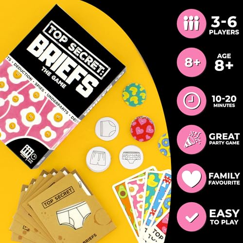 • Design: Top Secret Briefs Card Game : The game includes 6 secret folder sleeves, 6 underpants style cards, 6 underpants pattern cards, and 66 evidence cards, each with unique designs and features