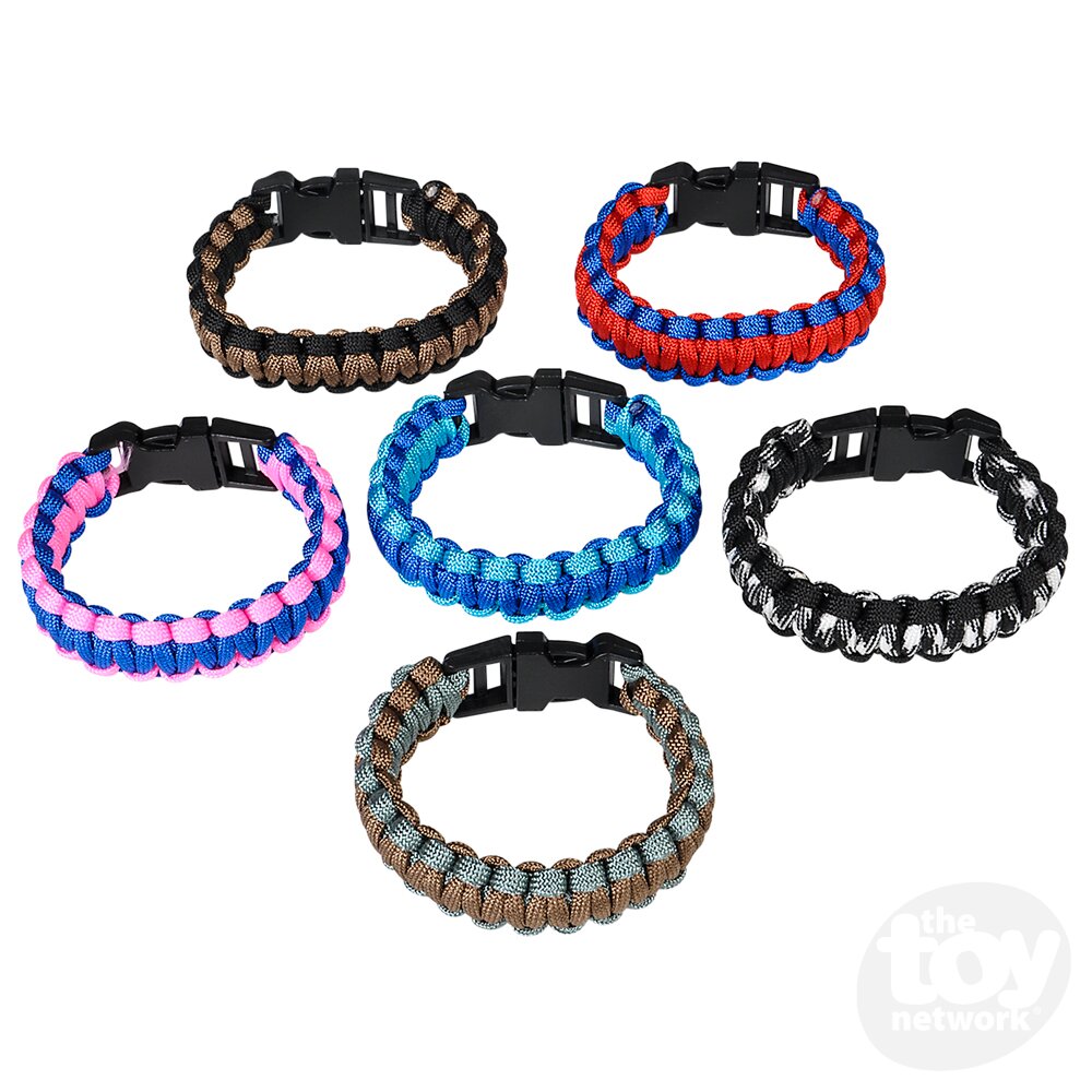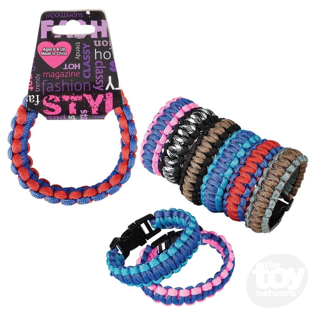 Our 9" Two-Tone Paracord Bracelets are great accessory pieces for any outfit. Each piece is on a card. Assorted colors.
