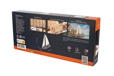 Sailors know the peaceful feeling of ocean sailing under a clear sky, a steady breeze filling the close-hauled white sails, as you skim the waves through a series of skillful tacks. It's that feeling of being one with nature and the elements, expertly beating windward, feeling the boat pick up speed with the right sail trim. Invite a few friends along, maybe break out some wine and cheese in the evening—that's the dream, and you can live it with Serenity's Dream, the clever new mechanical yacht from Ugears.