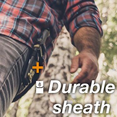 - Optimized For Your Survival: Durable Nylon Sheath Includes A Sharpener; Fire Starter Locks Into The Sheath And Striker Notch Is Incorporated On Back Of Blade For Emergency Fire Needs; Ergonomic Textured Rubber Handle Provides A Precise Non-Slip Grip.