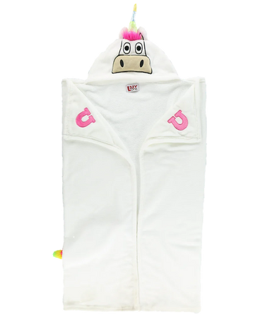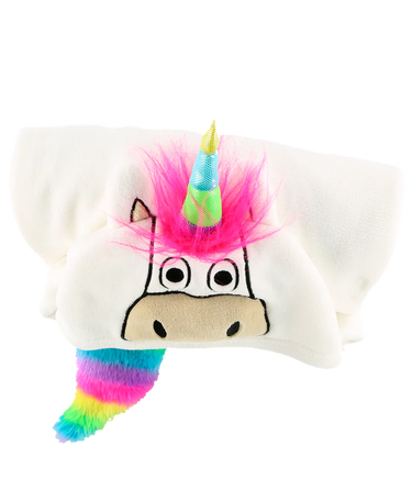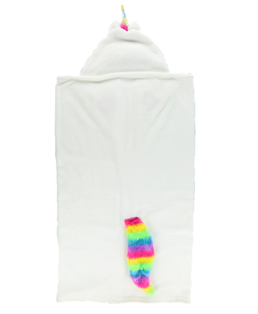 Unicorns! Everyone loves Unicorns and if your kid is a fan, you really need our Unicorn Kid's Hooded Blanket! Simply slip the hood over the noggin and nestle hands into the cozy corners-all featuring fun applique designs. Each blanket is a roomy 40" by 50" and made of lightweight, super-snuggly fleece. When it's time to wrap up warmly, our Critter Kids blankets are the "creature comforts" your kids will crave! One Size