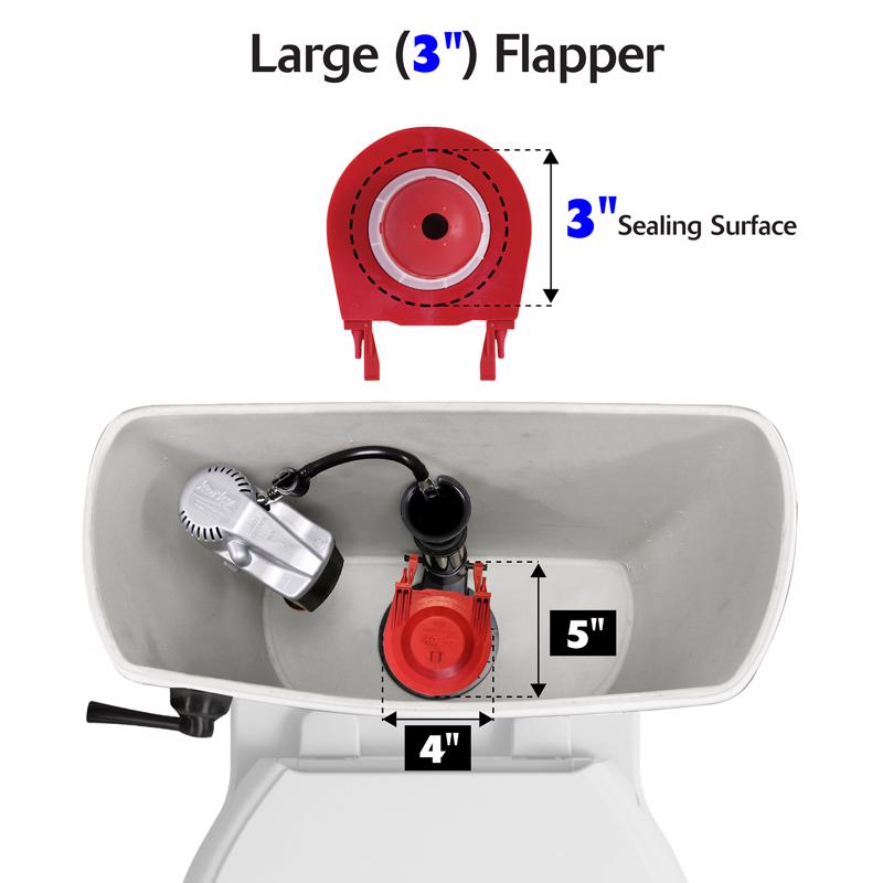 The Korky 3 inch Universal Toilet Tank Flapper is adjustable to match your original toilet's performance. It has a universal design and will fit oversized 3 inch flush valves found in newer 1.6 and 1.28 gpf toilets since the year 2005. The exclusive longest lasting red rubber resists chlorine, bacteria, city water treatment, hard water and well water. The adjustable toilet tank flapper has multiple settings to ensure it fits popular 3 inch toilet models including: Kohler, TOTO, American Standard, Gerber and Mansfield.