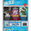 UNLOCK! is a series of escape adventures for up to six players. With one hour on the clock, players must work through a deck of sixty cards as a team, searching for clues, combining objects, and solving puzzles. The free UNLOCK! companion app runs the timer while providing clues, offering hints, and confirming successes. Once the team has reached a solution and entered the correct code into the app, they win the game!