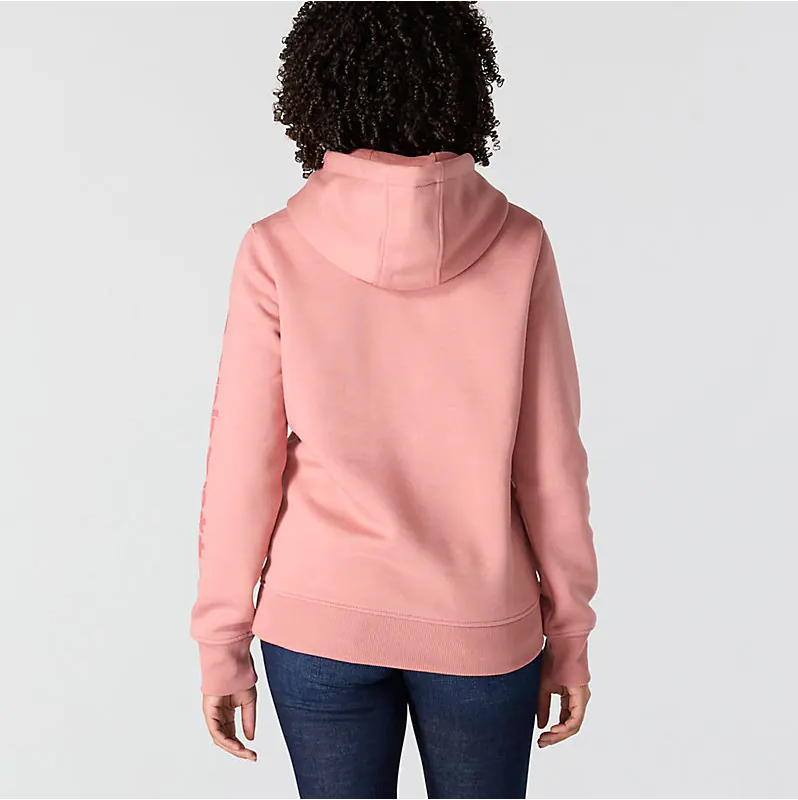 Cold winter mornings are a lot more comfortable with this women's cozy hoodie. Made of heavyweight fleece, the sweatshirt is brushed on the inside for extra softness. It has a relaxed fit that allows for easy layering, and it's finished with a Carhartt logo down the sleeve.