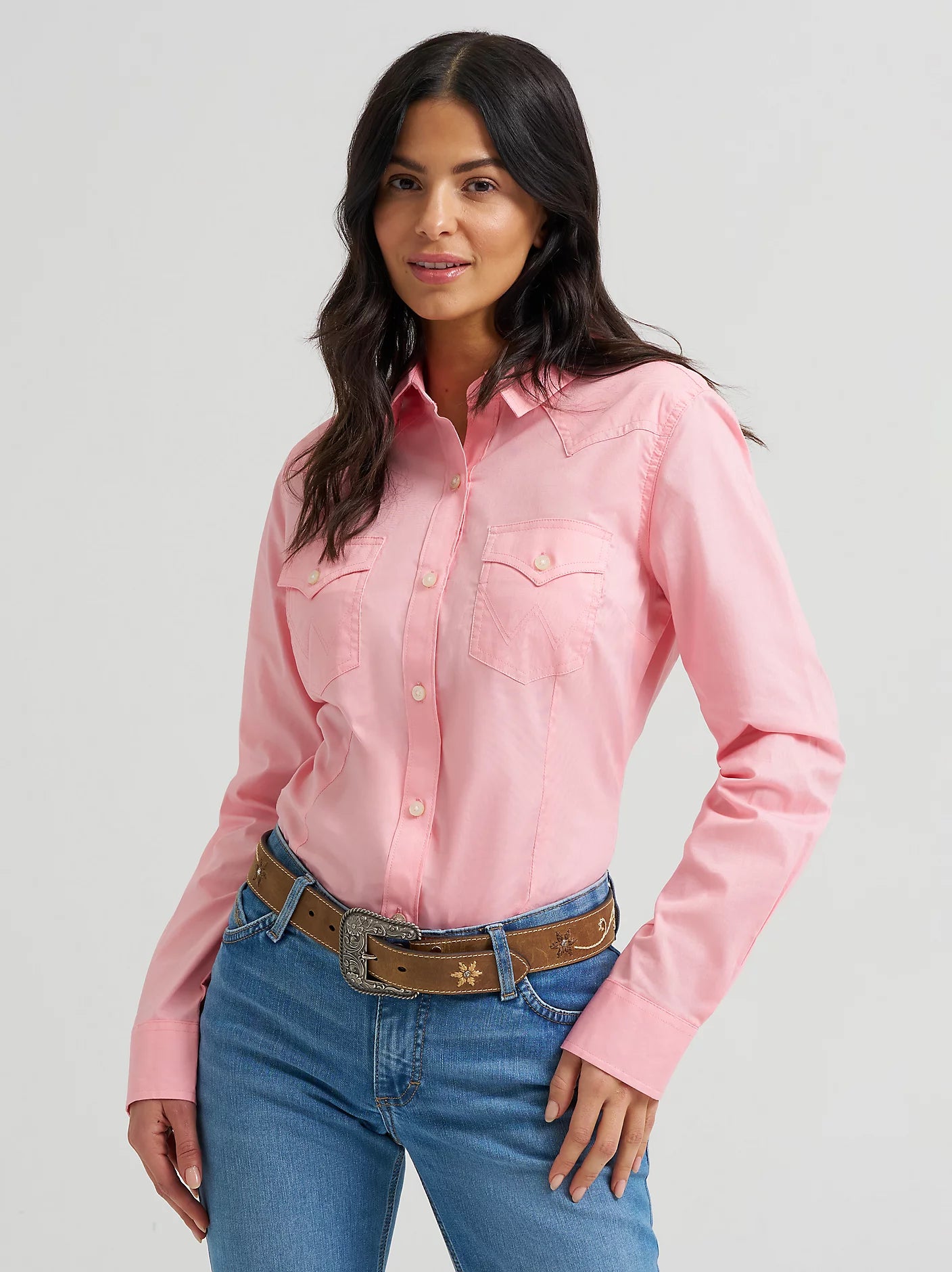 Women's Wrangler Western Button Down Shirt (Peony) Size M