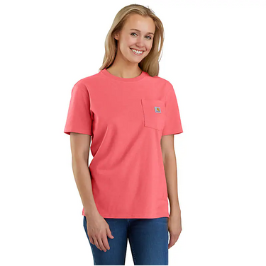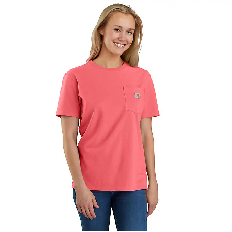 Carhartt Women's Loose Fit Heavyweight Short-Sleeve Pocket T-Shirt (Pink Salmon Heather) Size XL