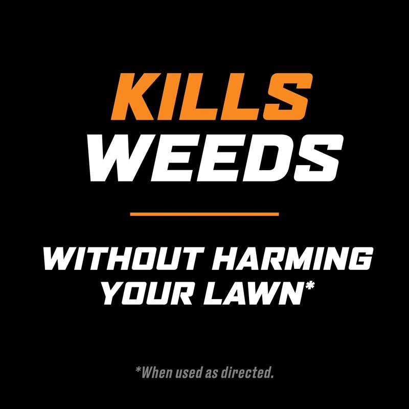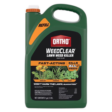 Kill weeds down to the root without harming your lawn (when used as directed) Ortho WeedClear Lawn Weed Killer Ready-To-Use Refill controls and suppresses over 200 types of weeds, including all major broadleaf weeds (see label for complete weed list) like dandelion, chickweed, clover and crabgrass, yet won't damage your grass (when used as directed). Specially formulated with three proven weed killers that when sprayed on the leaves, work through the plant to kill and control all the way down to the root.