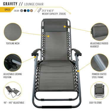 WFS™ FOLDING PORTABLE GRAVITY LOUNGE CHAIR