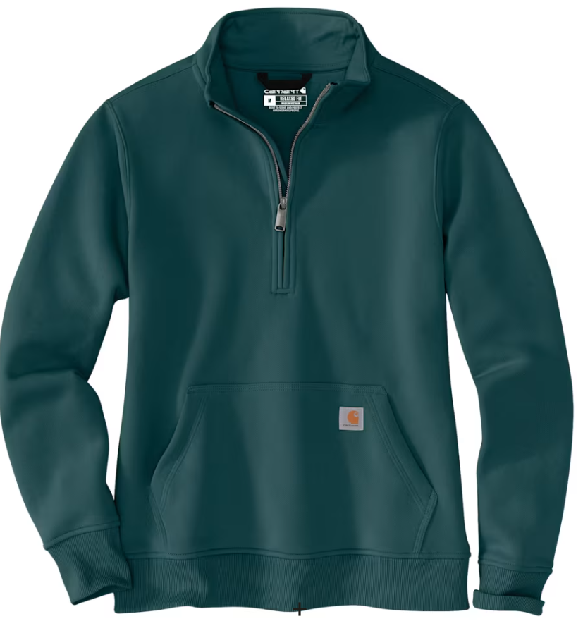 Home Carhartt Women's Relaxed Fit Midweight Quarter-Zip Mock-Neck Sweatshirt (Greenstone) Size L