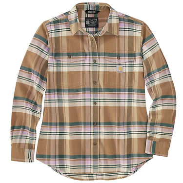 If you like your flannel with extra flex, this women's Carhartt long-sleeve flannel shirt provides built-in stretch for full mobility. It's made in cotton-blend fabric that's super soft and comfortable. The relaxed fit means it has a little extra room to move.