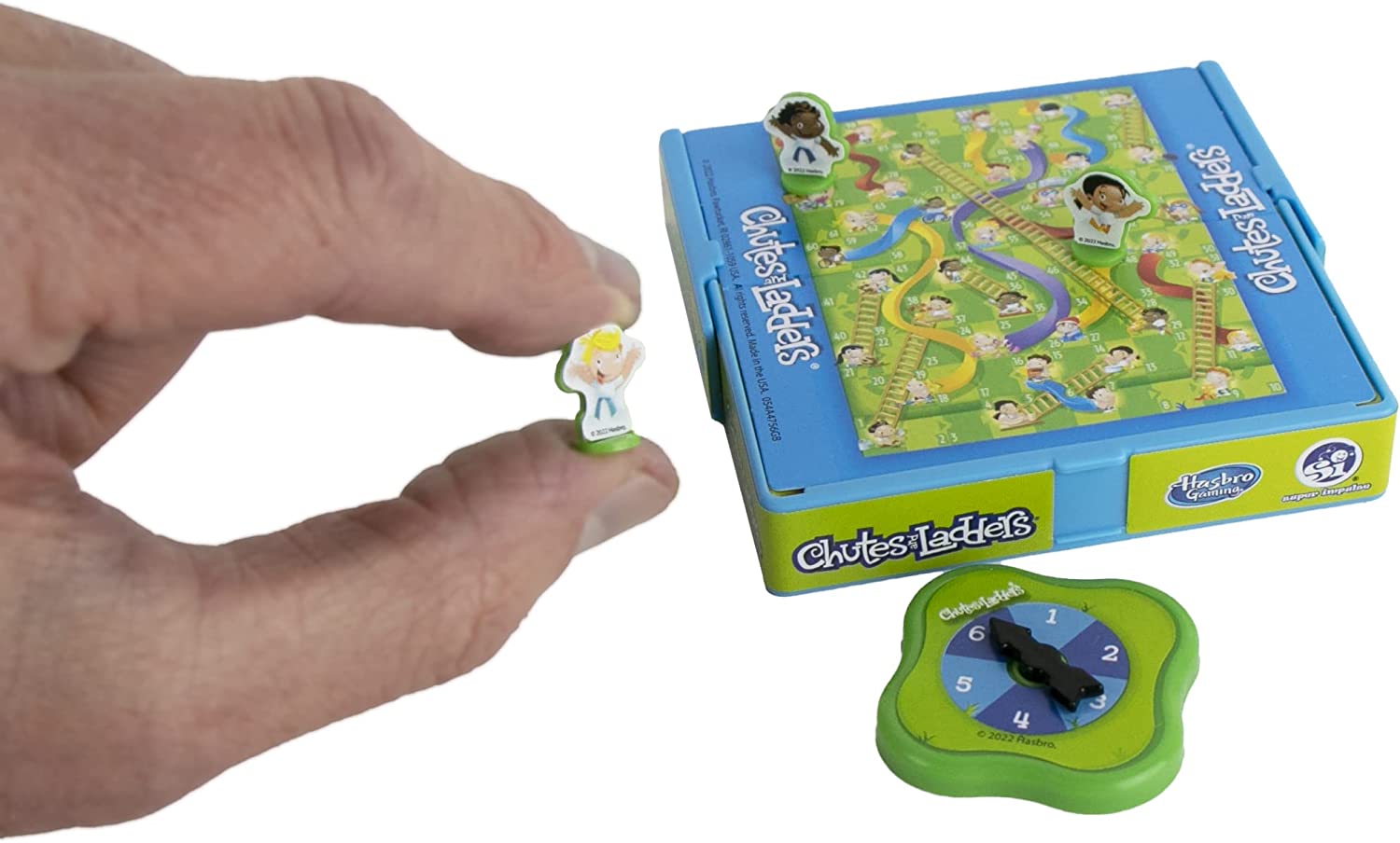 • The classic game of Chutes and Ladders is now available in a size that fits into the palm of your hand!