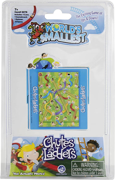 • World’s Smallest Chutes and Ladders plays just like the original, full-sized version! Comes complete with 1 case, 1 gameboard, 1 spinner, 3 pawns