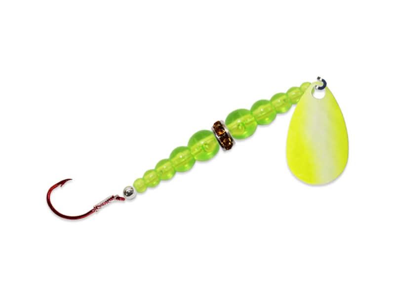 The Wedding Ring UV Spinner is a Wedding Ring Classic with a UV twist. This enhanced presentation combines highly visible glow and UV blades and beads with a 50-year favorite for trout, kokanee, walleye, panfish and more.