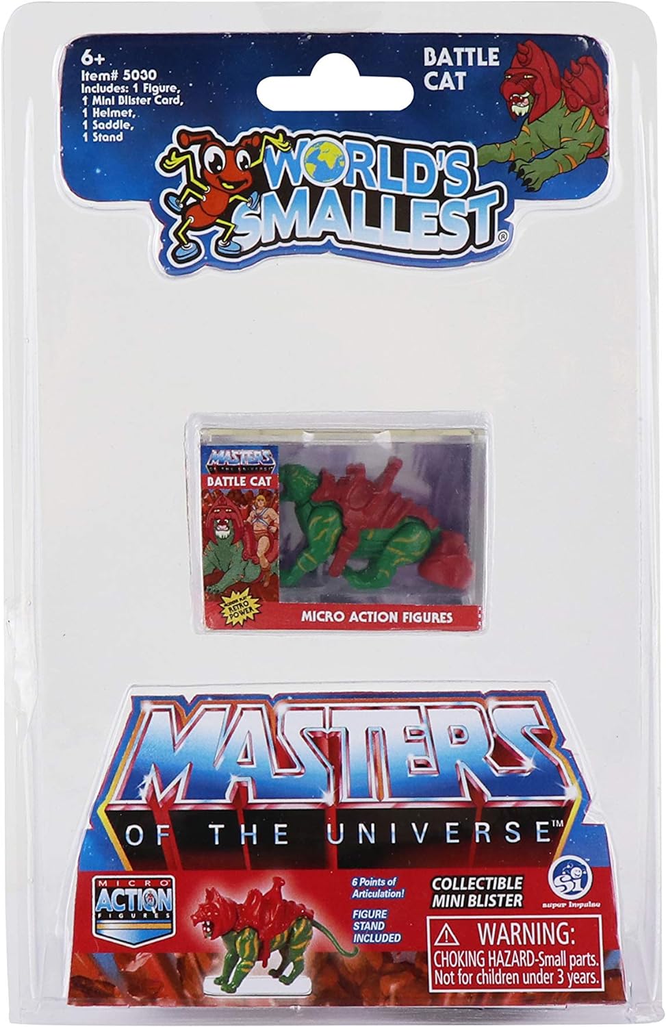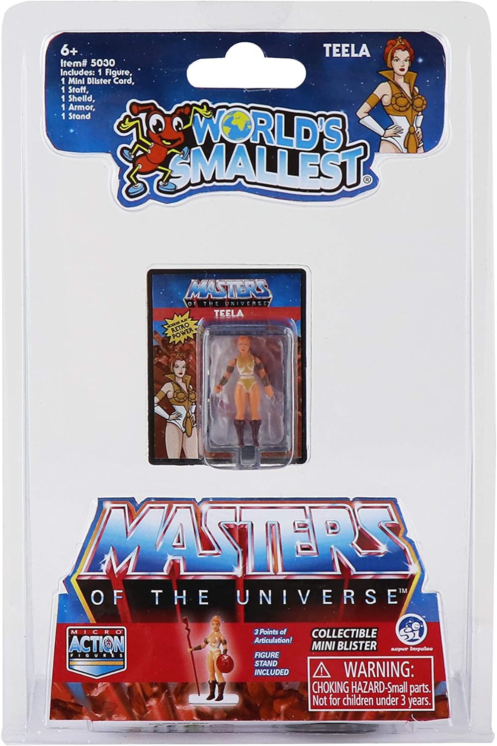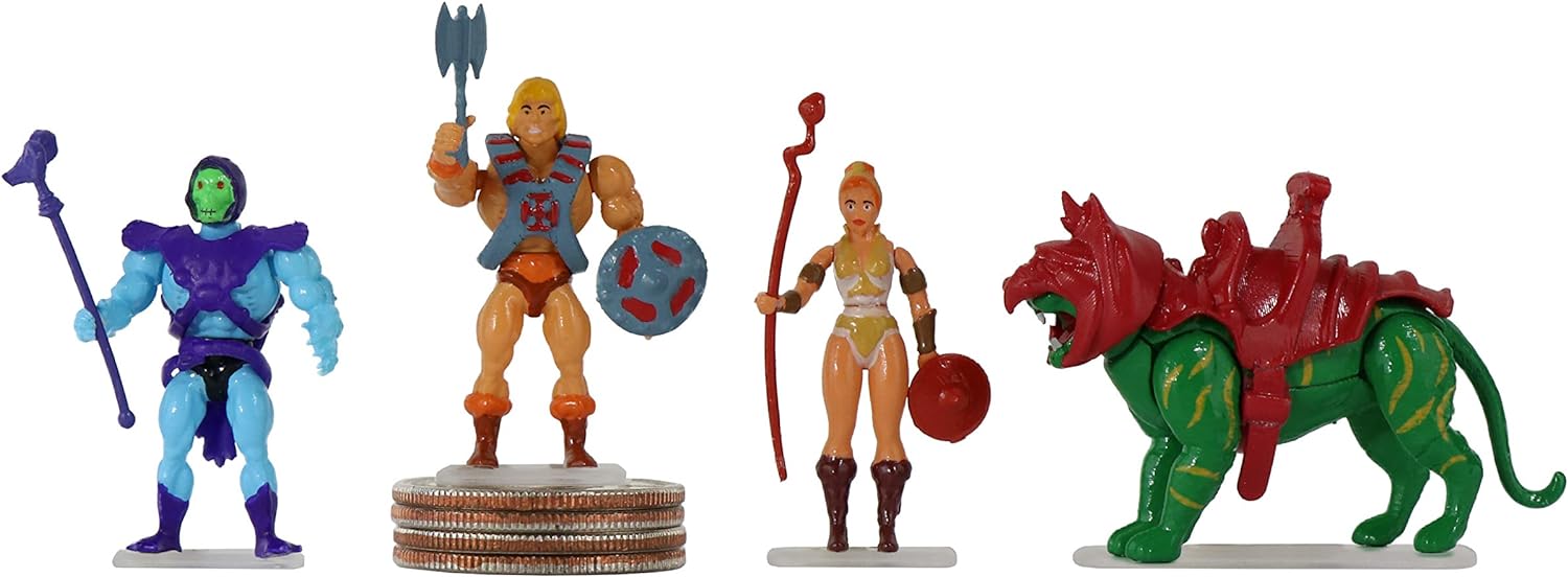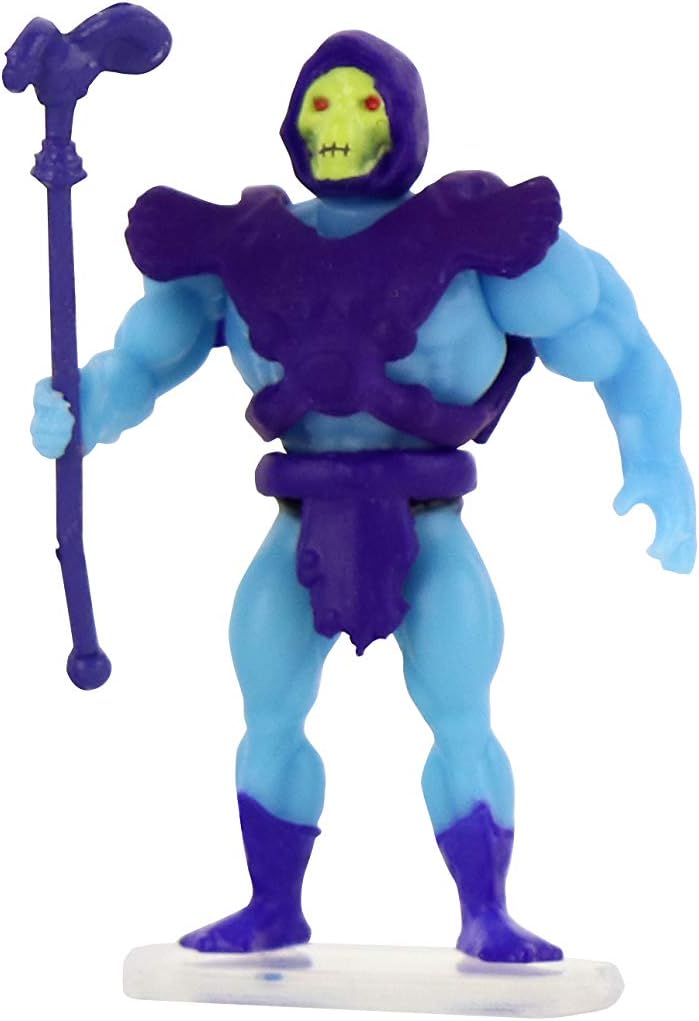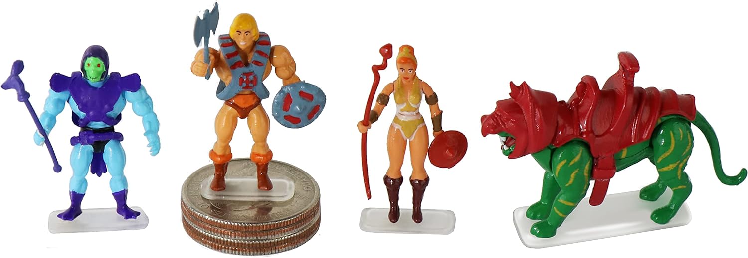 Enter into a fantastic universe beyond all time with Masters of the Universe Micro Action Figures! The most powerful man in the universe along with his trusted allies and evil foe are now available in micro size! They may be tiny, but they are still mighty! Micro Action Figures is a new line of highly detailed micro action figures for fans of all ages to collect and display. Now available in the world’s smallest size, measuring only 1.25 inches tall, each micro action figure has three points of articulation, and includes a replica of original blister card, for display and storage, a display stand and miniature accessories the figure can hold. The Masters of the Universe assortment features four retro styles He-Man, Battle Cat, Teela and archenemy Skeletor. Collect them all! Styles selected at random.