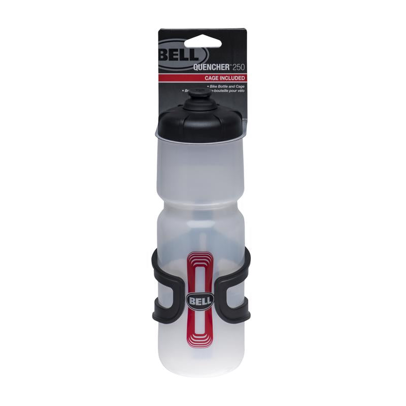 The Quencher 250 water bottle comes with a bottle cage for your bike and features an ergonomic bite valve for an easier drinking experience. The bottle has a 26 oz. (769 ml) capacity, and the wide-mouth lid makes it easy to clean and fill with ice. All Bell Quencher series water bottles.