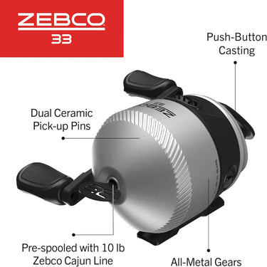 - EASY-TO-USE: The Zebco 33 spincast combo features a 5-foot 6-inch 2-piece fishing pole and size 30 fishing reel. You will be ready to hit the water with the patented no-tangle design reel that comes pre-spooled with 10-pound Zebco Cajun line. Whether you’re curious or serious about fishing, the reel that taught America to fish makes it easy